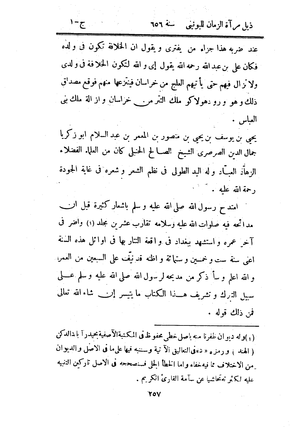 يحيى بن يوسف بن يحيى بن منصور بن المعمر بن عبد السلام أبو زكريا جمال الدين الصرصري الشيخ الصالح الحنبلي كان من العلماء الفضلاء الزهاد العباد وله اليد الطولى في نظم الشعر وشعره في غاية الجودة رحمة الله عليه.