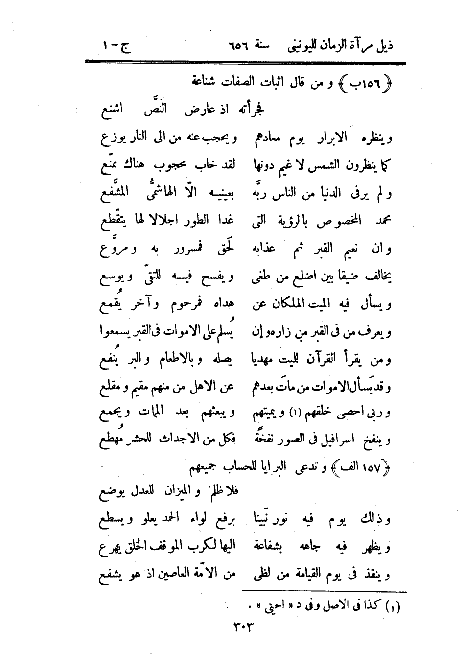 ومن قال إثبات الصفات شناعة ... فجرأته إذ عارض النصّ أشنع