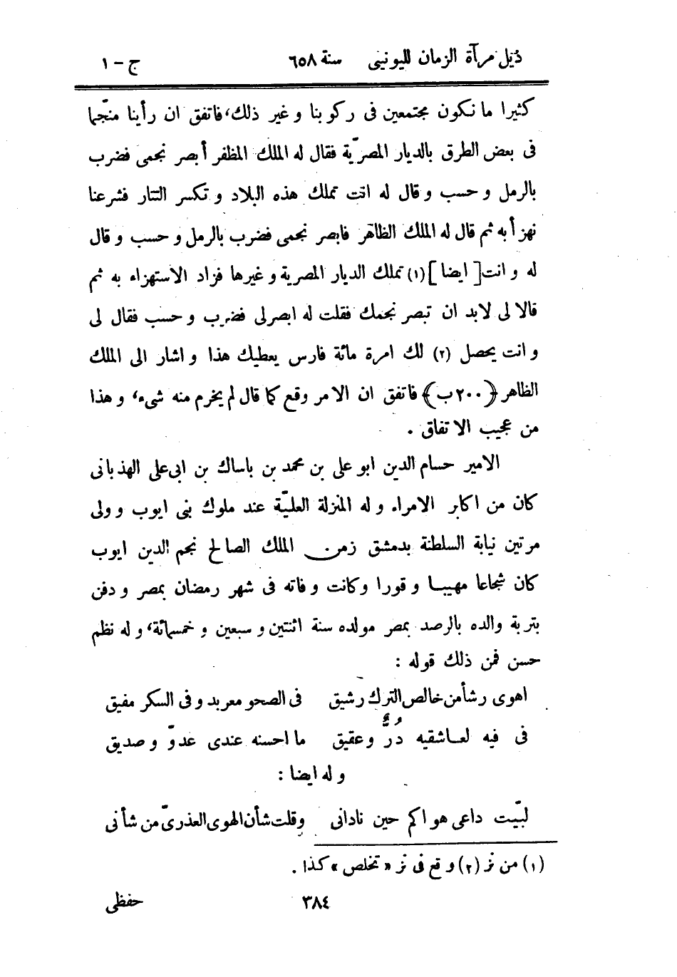 الأمير حسام الدين أبو علي بن محمد باساك بن أبي علي الهذباني كان من أكابر الأمراء وله المنزلة العلية عند ملوك بني أيوب وولي مرتين نيابة السلطنة بدمشق زمن الملك الصالح نجم الدين أيوب كان شجاعاً مهيباً وقوراً وكانت وفاته في شهر رمضان بمصر ودفن بتربة والده بالرصد بمصر مولده سنة اثنين وسبعين وخمسمائة وله نظم حسن فمن ذلك قوله: