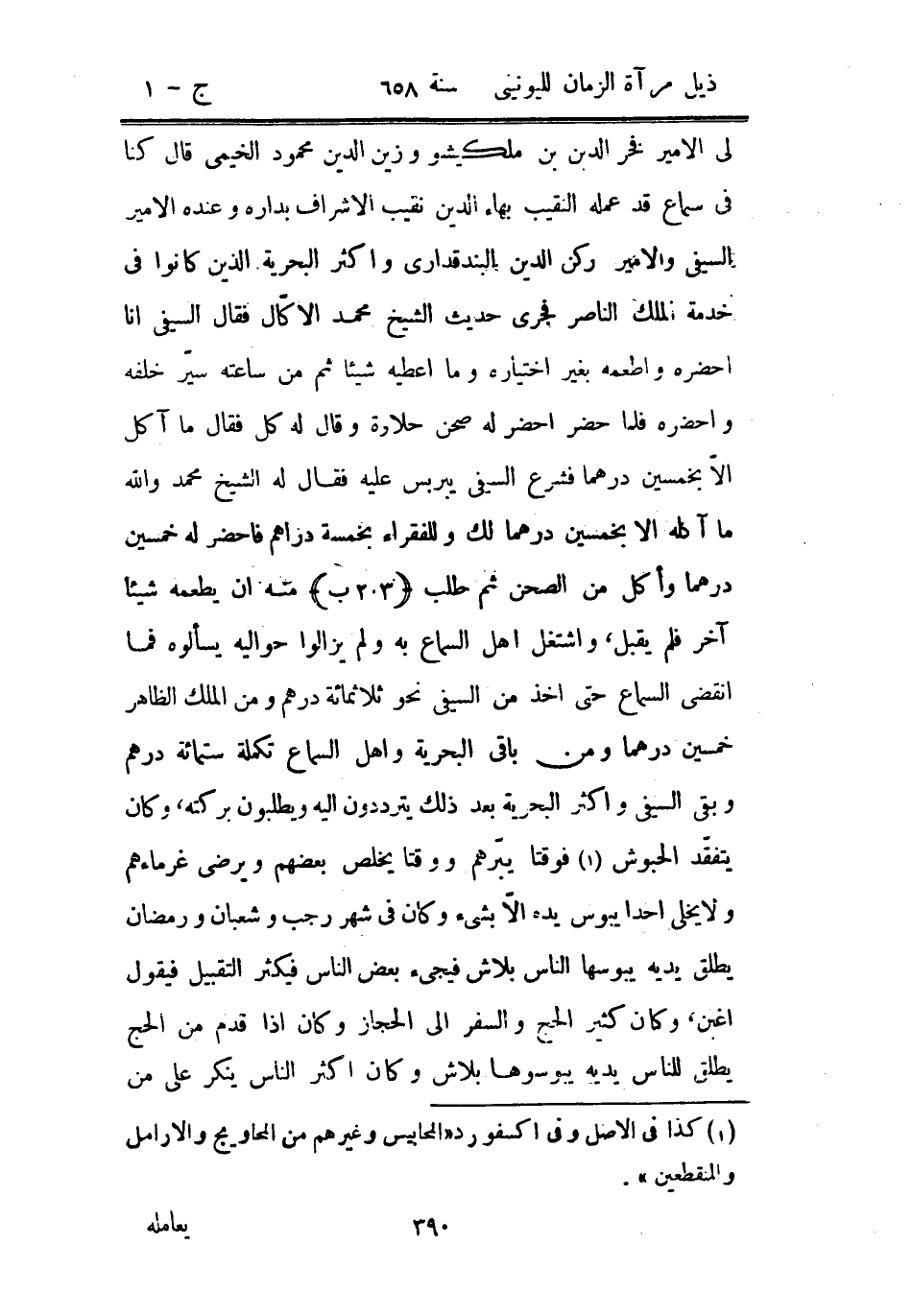 لي الأمير فخر الدين بن ملكيشو وزين الدين محمود الخيمي قال كنا في سماع قد عمله النقيب بهاء الدين نقيب الأشراف بداره وعنده الأمير السيفي والأمير ركن الدين البندقداري وأكثر البحرية الذين كانوا في خدمة الملك الناصر فجرى حديث الشيخ محمد الأكال فقال السيفي أنا أحضره وأطعمه فلما حضر أحضر له صحن حلاوة وقال له كل فقال ما آكل إلا بخمسين درهماً فشرع السيفي يبربس عليه فقال له الشيخ محمد والله لا أكله إلا بخمسين درهماً لك وللفقراء بخمسة دراهم فأحضر له خمسين درهماً وأكل من الصحن ثم طلب منه أن يطعمه شيئاً آخر فلم يقبل واشتغل أهل السماع به ولم يزالوا حواليه يسألوه فما أنقضى السماع حتى أخذ من السيوفي نحو ثلاثمائة درهم ومن الملك الظاهر خمسين درهما ومن باقي البحرية وأهل السماع تكملة ستمائة درهم وبقي السيفي وأكثر البحرية بعد ذلك يترددون إليه ويطلبون بركته وكان يتفقد الجيوش فوقتاً يبرهم ووقتاً يخلص بعضهم ويرضي غرمائهم ولا يبقي أحداً يبوس يده إلا بشئ وكان في شهر رجب وشعبان ورمضان يطلق يديه يبوسها الناس بلاش فيجئ بعض الناس فيكثر التقبيل فيقول أغبن وكان كثير الحج والسفر إلى الحجاز وكان إذا قدم من الحج يطلق يديه للناس يبوسوها بلاش وكان أكثر الناس ينكر على من