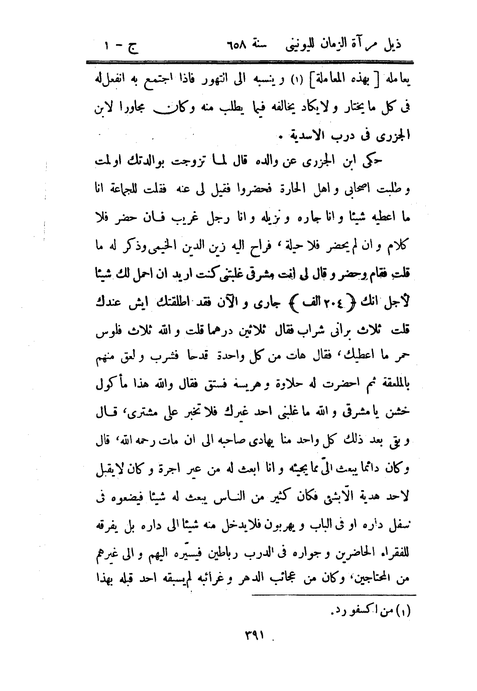 يعامله بهذه المعاملة وينسبه إلى التهور فإذا اجتمع به أنفعل له في كل ما يختار ولا يكاد يخالفه فيما يطلب منه وكان مجاورا لابن الجزري في درب الأسدية.