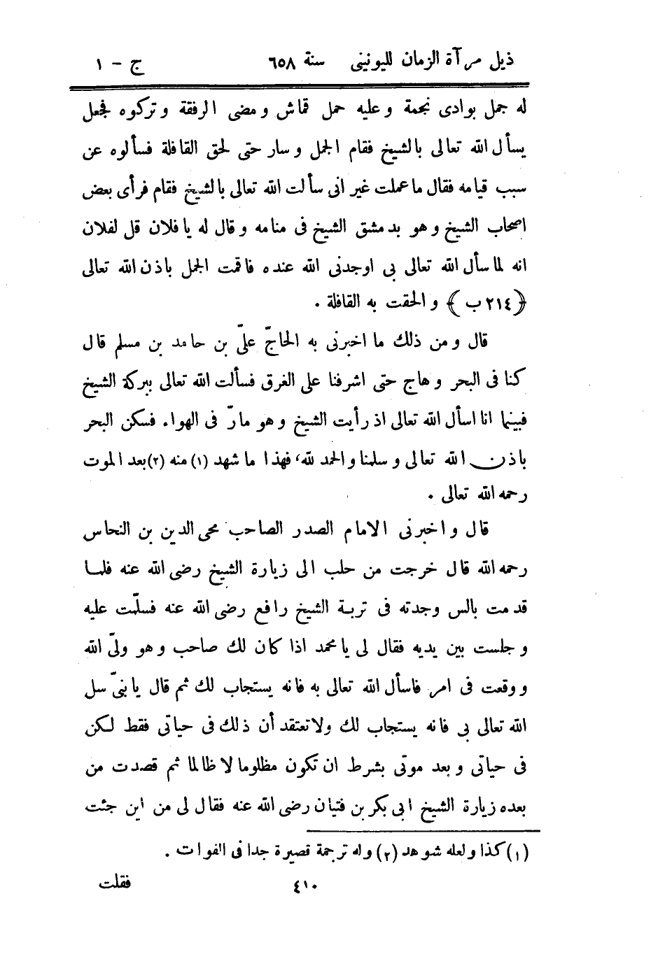 له جمل بوادي نجمة وعليه حمل قماش ومضى الرفقة وتركوه فجعل يسأل الله تعالى بالشيخ فقام الجمل وسار حتى لحق بالقافلة فسألوه عن سبب قيامه فقال ما عملت غير أني سألت الله تعالى بالشيخ فقام فرأى بعض أصحاب الشيخ وهو بدمشق الشيخ في منامه وقال له يا فلان قل لفلان أنه لما سأل الله تعالى بي أوجدني الله عنده فأقمت الجمل بإذن الله تعالى وألحقت به القافلة.