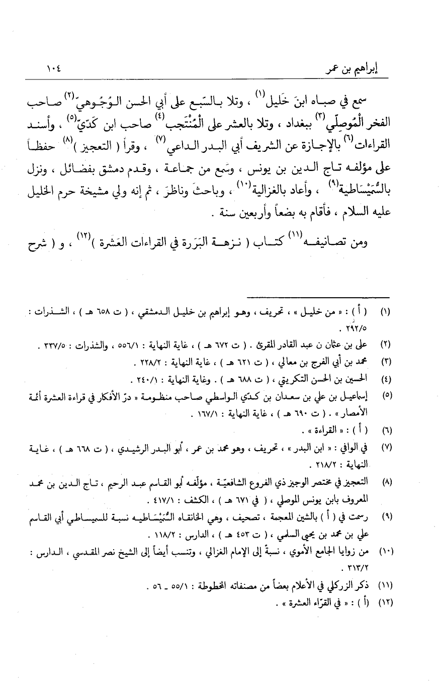 ومن تصانيفه كتاب نزهة البررة في القراءات العشرة، وشرح