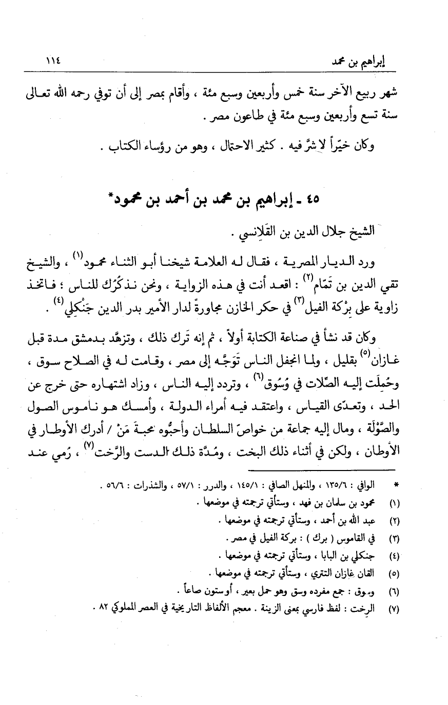 وكان قد نشأ في صناعة الكتابة أولاً، ثم إنه ترك ذلك، وتزهد بدمشق مدة قبل غازان بقليل، ولما انجفل الناس توجه إلى مصر، وقامت له في الصلاح سوق، وحملت إليه الصلات في وسوق، وتردد إليه الناس، وزاد اشتهاره حتى خرج عن الحد، وتعدى القياس، واعتقد فيه أمراء الدولة، وأمسك هو ناموس الصول والصولة، ومال إليه جماعة خواص السلطان وأحبوه محبة من أدرك الأوطار في الأوطان، وكلن في أثناء ذلك البخت، ومدة ذلك الدست والرخت، رمي عند