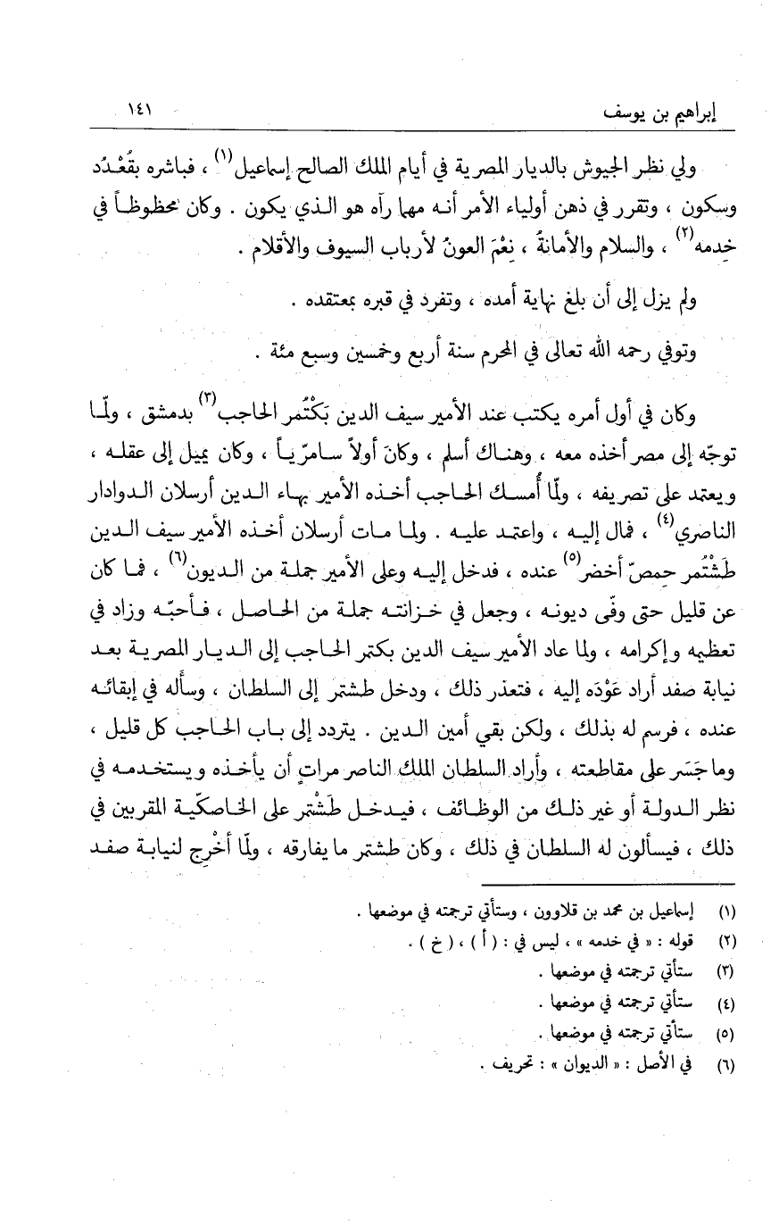ولي نظر الجيوش بالديار المصرية في أيام الملك الصالح إسماعيل، فباشره بقعدد وسكون، وتقرر في ذهن أولياء الأمر أنه مهما رآه هو الذي يكون. وكان محظوظاً في خدمه، والسلام والأمانة، نعم العونُ لأرباب السيوف والأقلام.