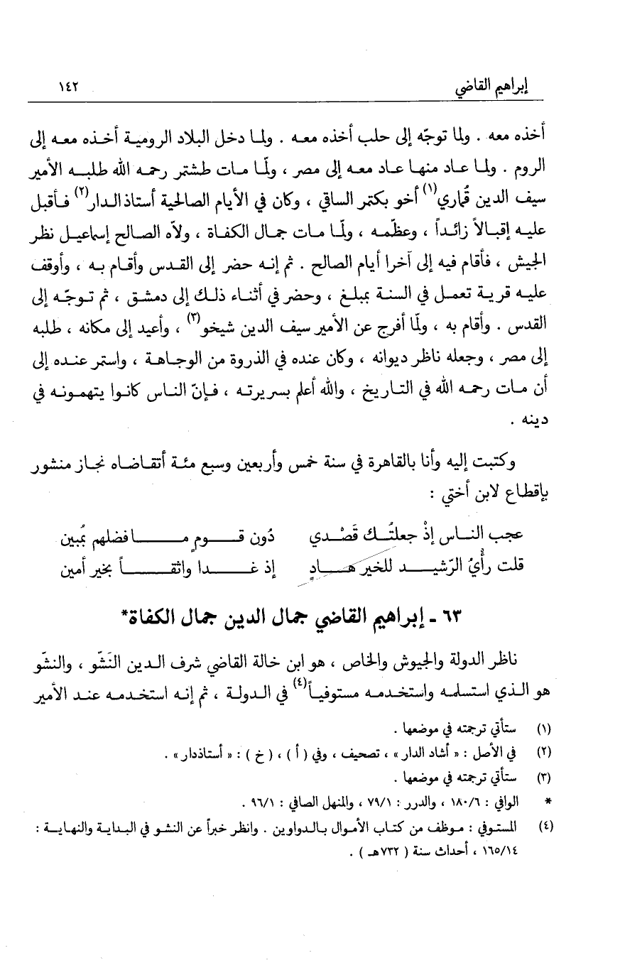 ناظر الدولة والجيوش والخاص، وهو ابن خالة القاضي شرف الدين النشو، والنشو هو الذي استسلمه واستخدمه مستوفياً في الدولة، ثم إنه استخدمه عند الأمير