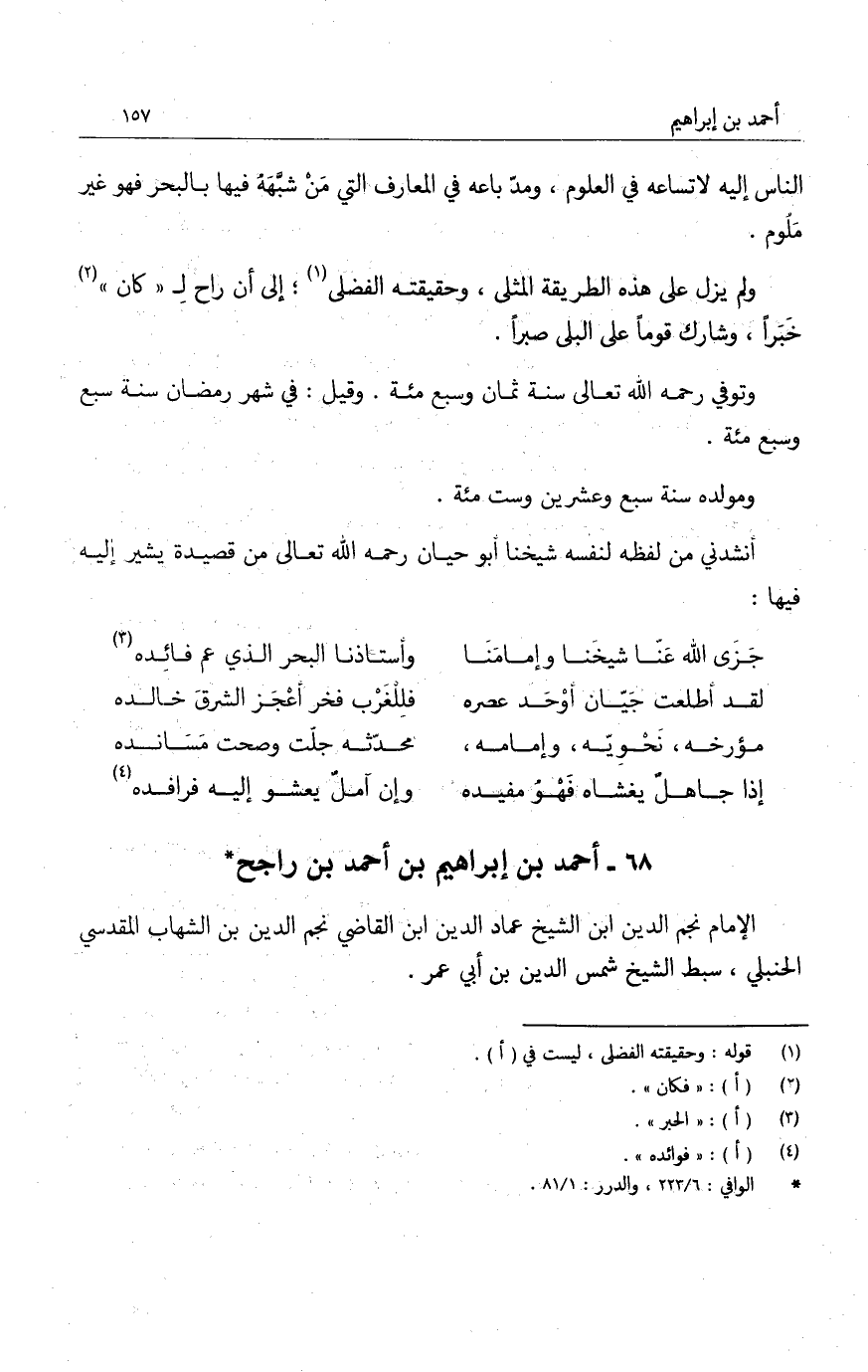 ولم يزل على هذه الطريق المثلى، وحقيقته الفضلى، إلى أن راحِ ل كان خبراً، وشارك قوماً على البلى صبراً.