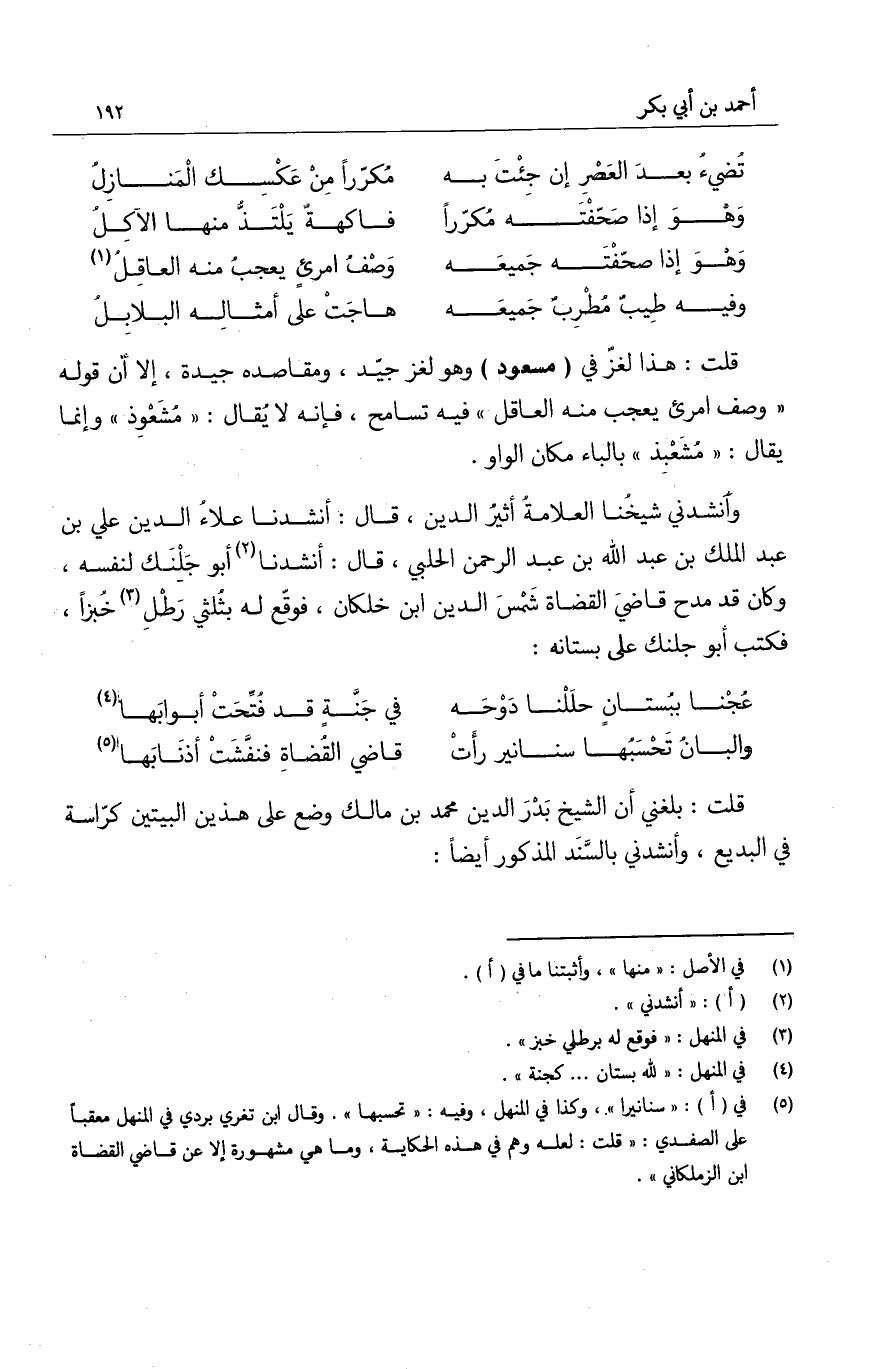 قلت: بلغني أن الشيخ بدر الدين محمد بن مالك وضع على هذين البيتين كراسة في البديع، وأنشدني بالسند المذكور أيضاً: