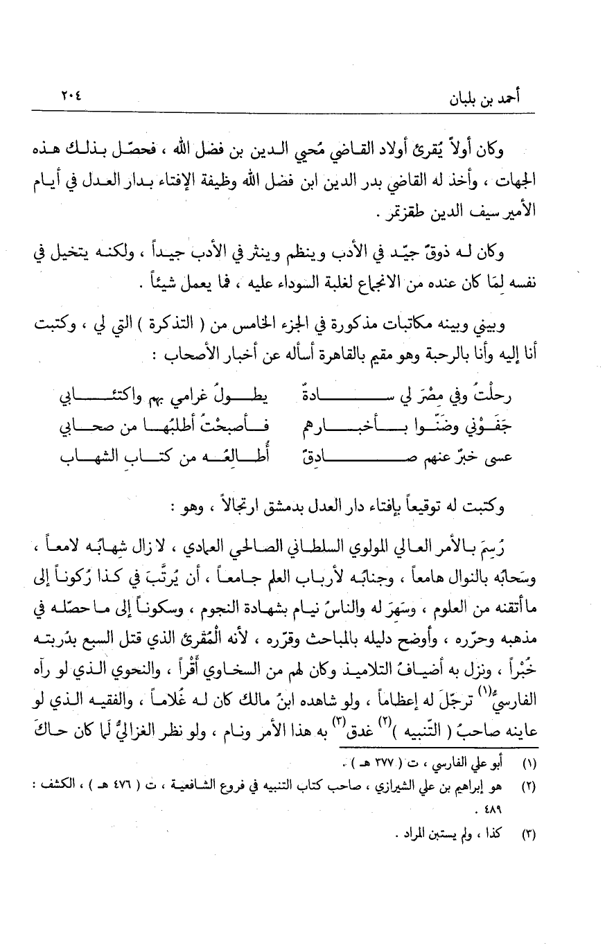 وبيني وبينه مكاتبات مذكورة في الجزء الخامس من التذكرة التي لي، وكتبت إنا إليه وإنا بالرحبة وهو مقيم بالقاهرة أسأله عن أخبار الأصحاب: