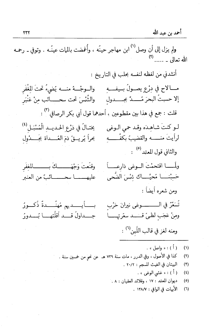 ولم يزل إلى أن وصل ابن مهاجر حينُه، وأغمضت بالممات عينُه وتوفي رحمه الله تعالى.