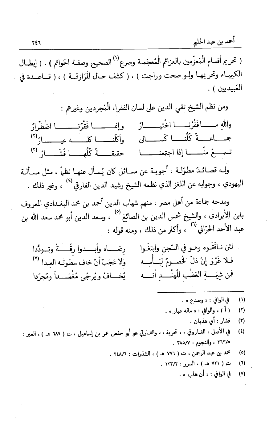 ومن نظم الشيخ تقي الدين على لسان الفقراء المُجردين وغيرهم: