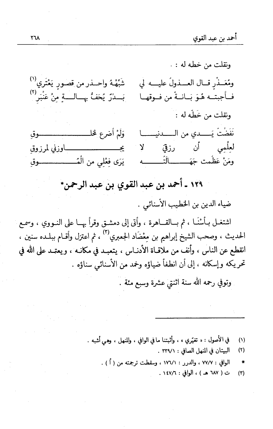 اشتغل بأينا، ثم بالقاهرة، وأتى إلى دمشق وقرأ بها على النووي، وسمع الحديث، وصحب الشيخ إبراهيم بن مِعضَاد الجعبري، ثم اعتزل وأقام ببلده سنين، انقطع عن الناس، وأنف من ملاقاة الأدناس، يتعبد في مكانه، ويعتمد على الله في تحريكه وإسكانه، إلى أن انطفأ ضياؤه وخمد من الأسنائي سناؤه.