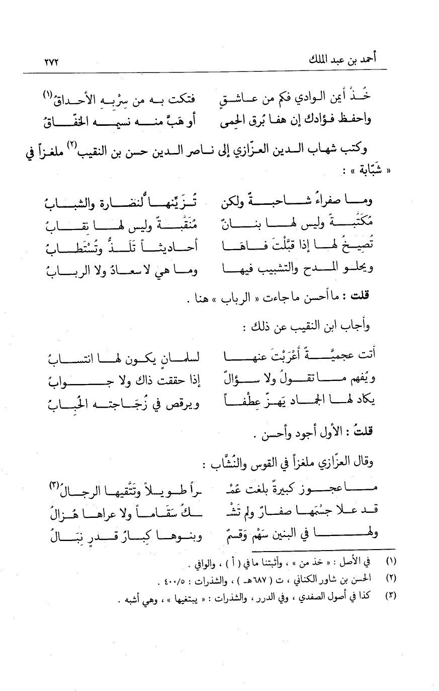 وكتب شهاب الدين العزّازي إلى ناصر الدين حسن بن النقي ملغزاً في " شبّابة ":