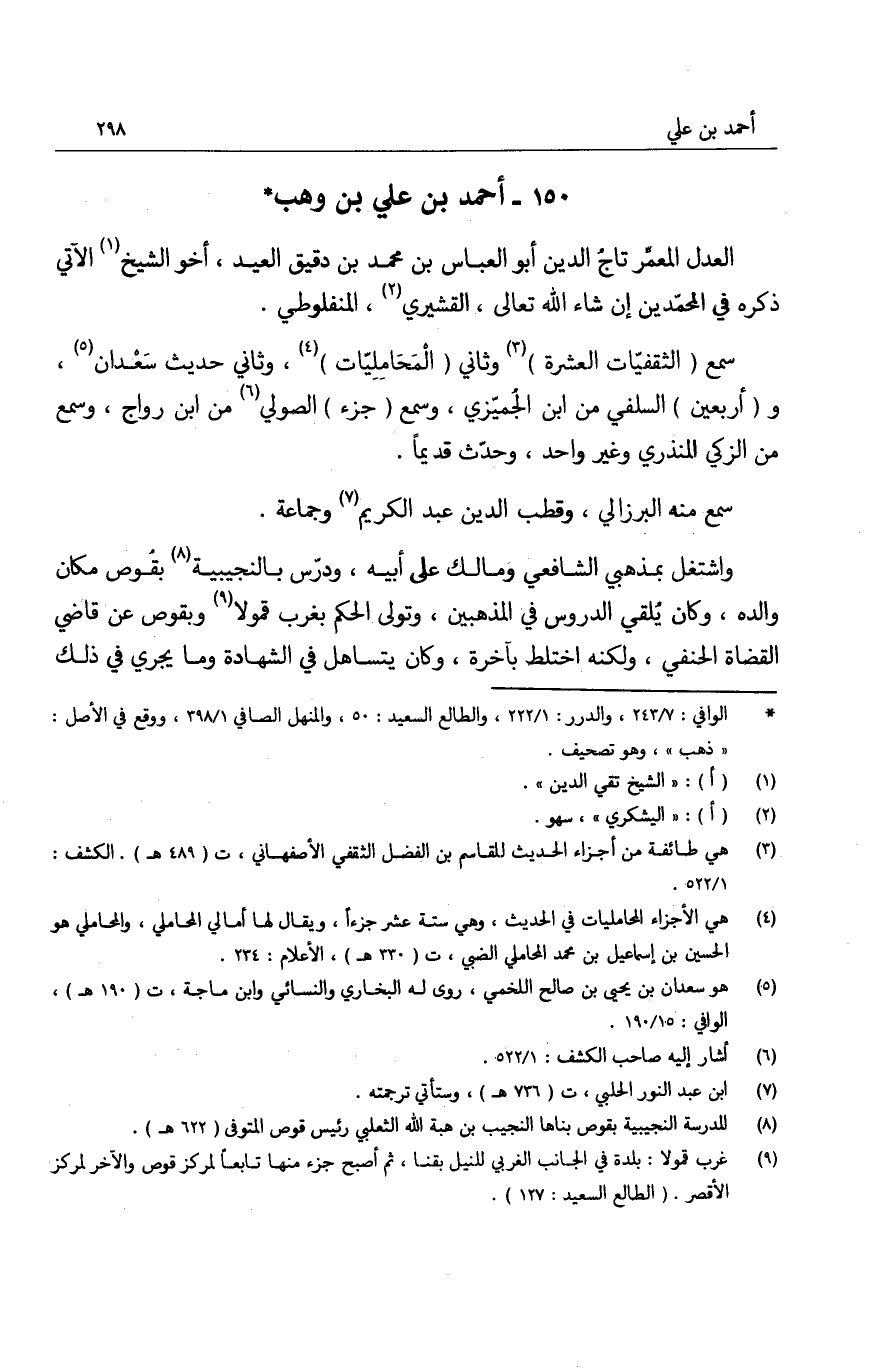 العدل المعمِّر الدين أبو العباس بن محمد بن دقيق العيد، أخو الشيخ الآتي ذكره في المحمّدين إن شاء الله تعالى، القشيري، المنفلوطي.
