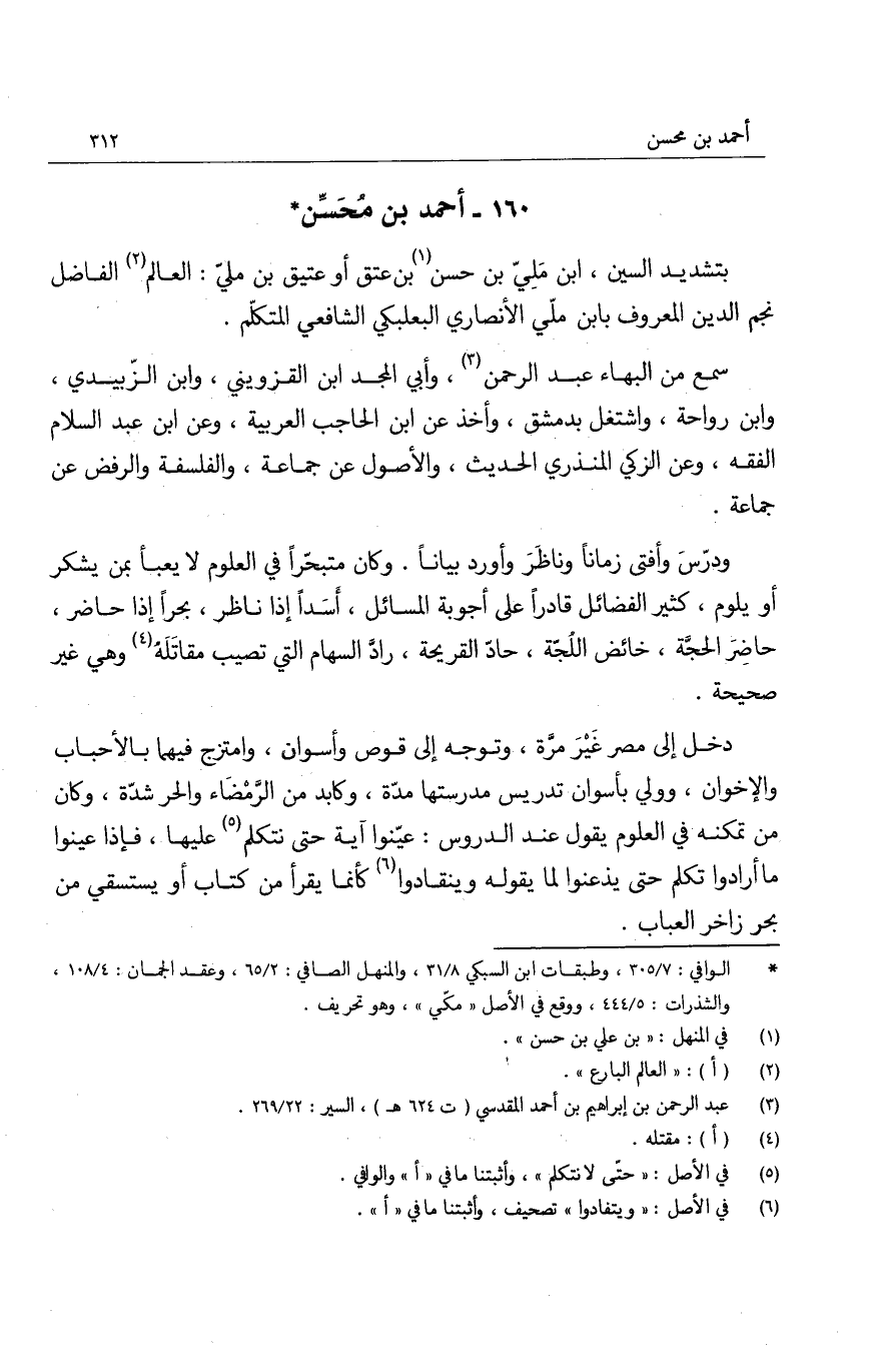 بتشديد السين، ابن مَلِيّ بن حسن بن عتق أو عتيق بن مليّ: العالم الفاضل نجم الدين المعروف بابن ملّي الأنصاري البعلبكي الشافعي المتكلّم.