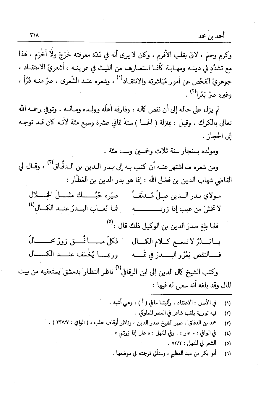 وكتب الشيخ كمال الدين إلى ابن الرقاقي ناظر النظار بدمشق يستعفيه من بيت المال وقد بلغه أنه سعى له فيها: