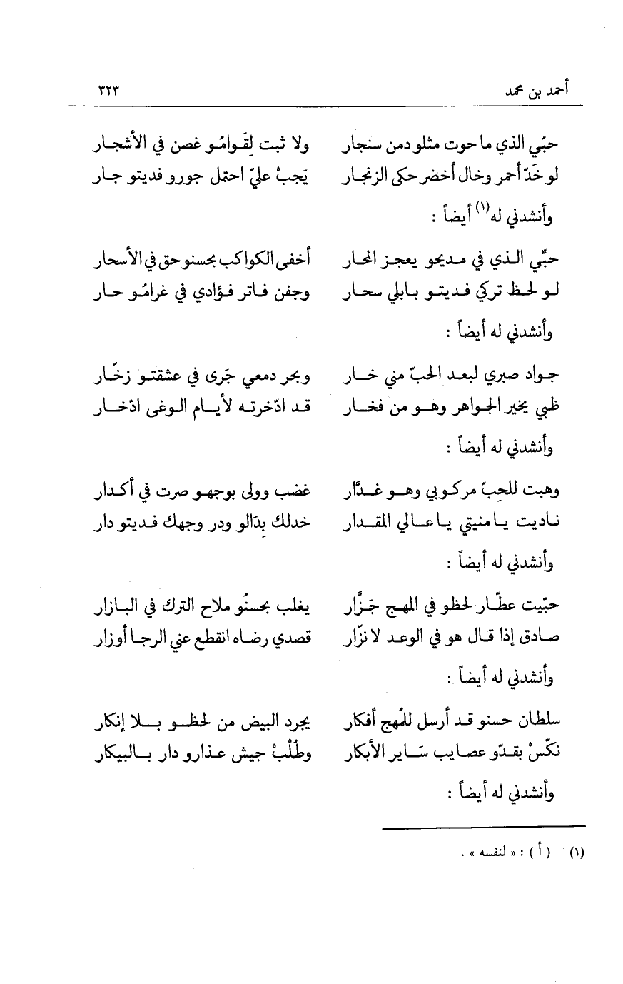 حبّي الذي ما حوت مثلو دمن سنجار ... ولا ثبت لِقَوامُو غصن في الأشجار