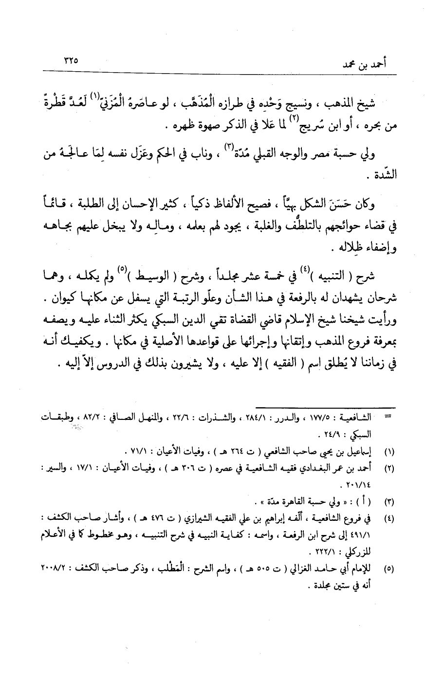 شيخ المذهب، ونسيج وحده في طرازه المُذهَّب، لو عاصره المُزَنيّ لعُدَّ قَطْرةً من بحره، أو ابن سُريج لما عَلا في الذكر صهوة ظهره.
