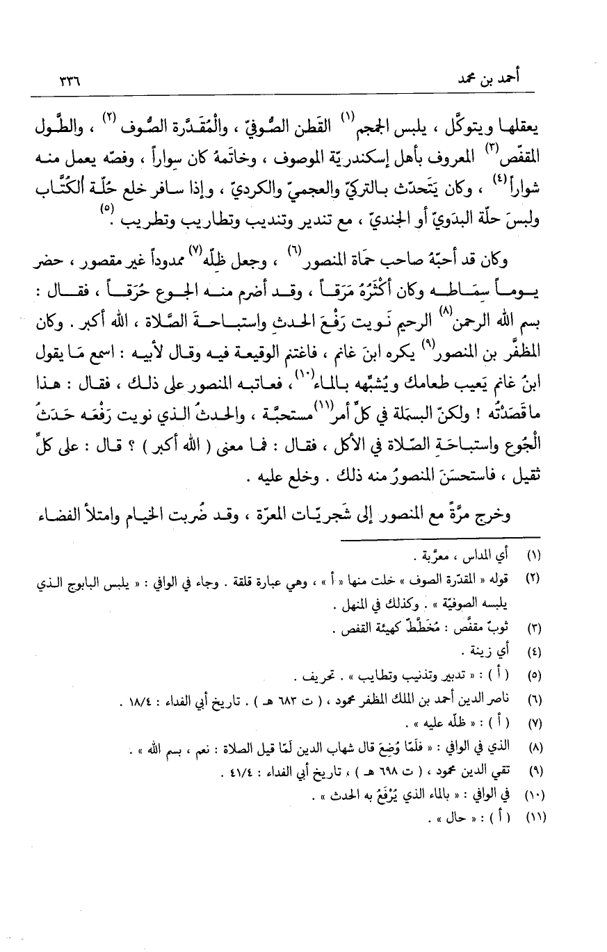 وخرج مرّةً مع المنصور إلى شَجريّات المعرّة، وقد ضُربت الخيام وامتلأ الفضاء