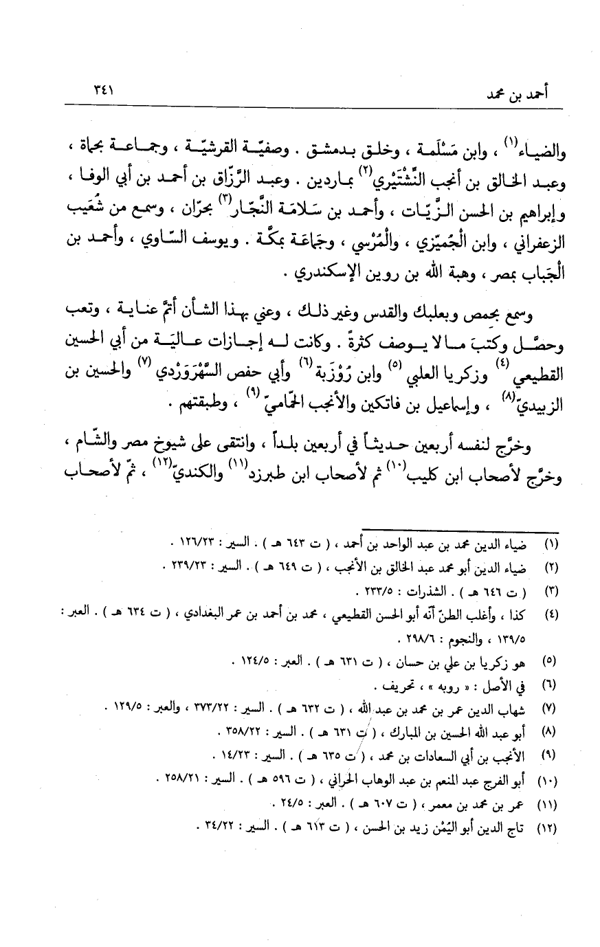والضياء، وابن مَسْلَمة، وخلق بدمشق. وصفيّة القرشيّة، وجماعة بحماة، وعبد الخالق بن أنجب النِّشْتَيري بماردين، وعبد الرزاق بن أحمد بن سَلامة الزّيات، وأحمد بن سَلامة النجّار بحرّان، وسمع من شُعيب الزعفراني، وابن الجُميّزي، والمُرْسي، وجماعة بمكّة. ويوسف الساوي، وأحمد بن الجَباب بمصر، وهبة الله بن روين الإسكندري.