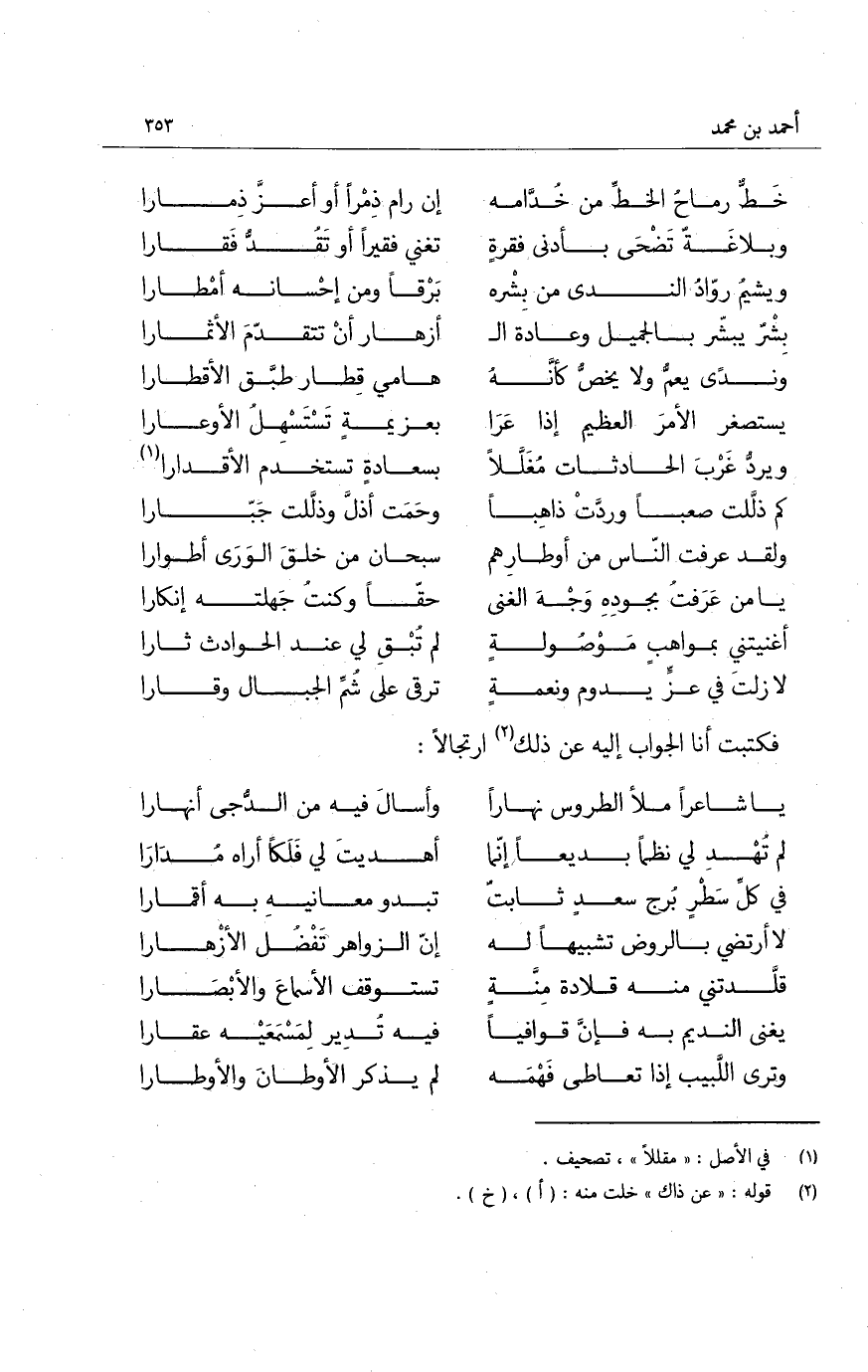 يا شاعراً ملأ الطروس نهاراً ... وأسال فيه من الدجى أنهارا