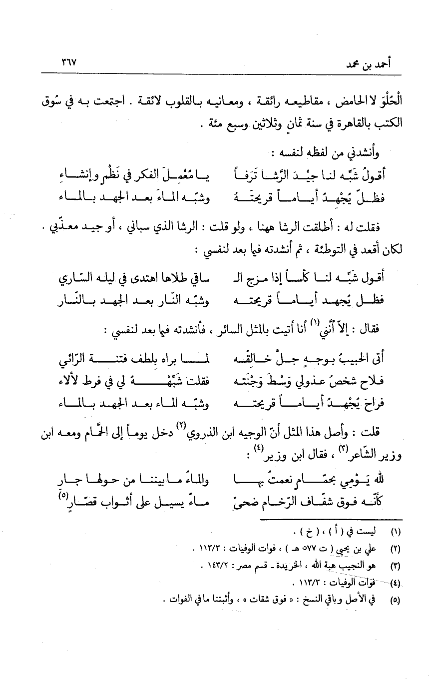 الحُلو لا الحامض، مقاطيعه رائقة، ومعانيه بالقلوب لائقة. اجتمعت به في شوق الكتب بالقاهرة في سنة ثمانٍ وثلاثين وسبع مئة.