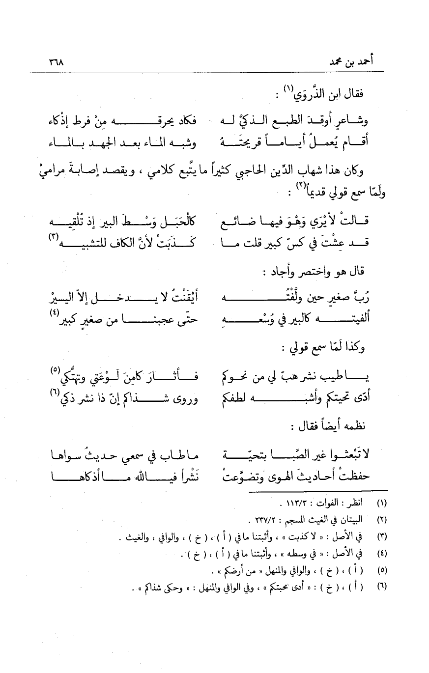 وكان هذا شهاب الدين الحاجبي كثيراً ما يتّبع كلامي، ويقصد إصابة مراميْ ولما سمع قولي قديماً: