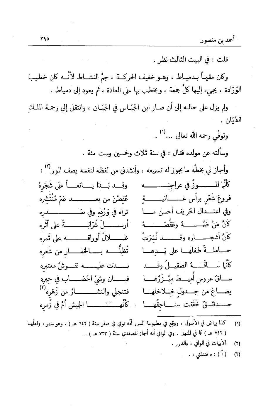 ولم يزل على حاله إلى أن صار ابن الجبّاس في الجبّان، وانتقل إلى رحمة الملك الديّان.