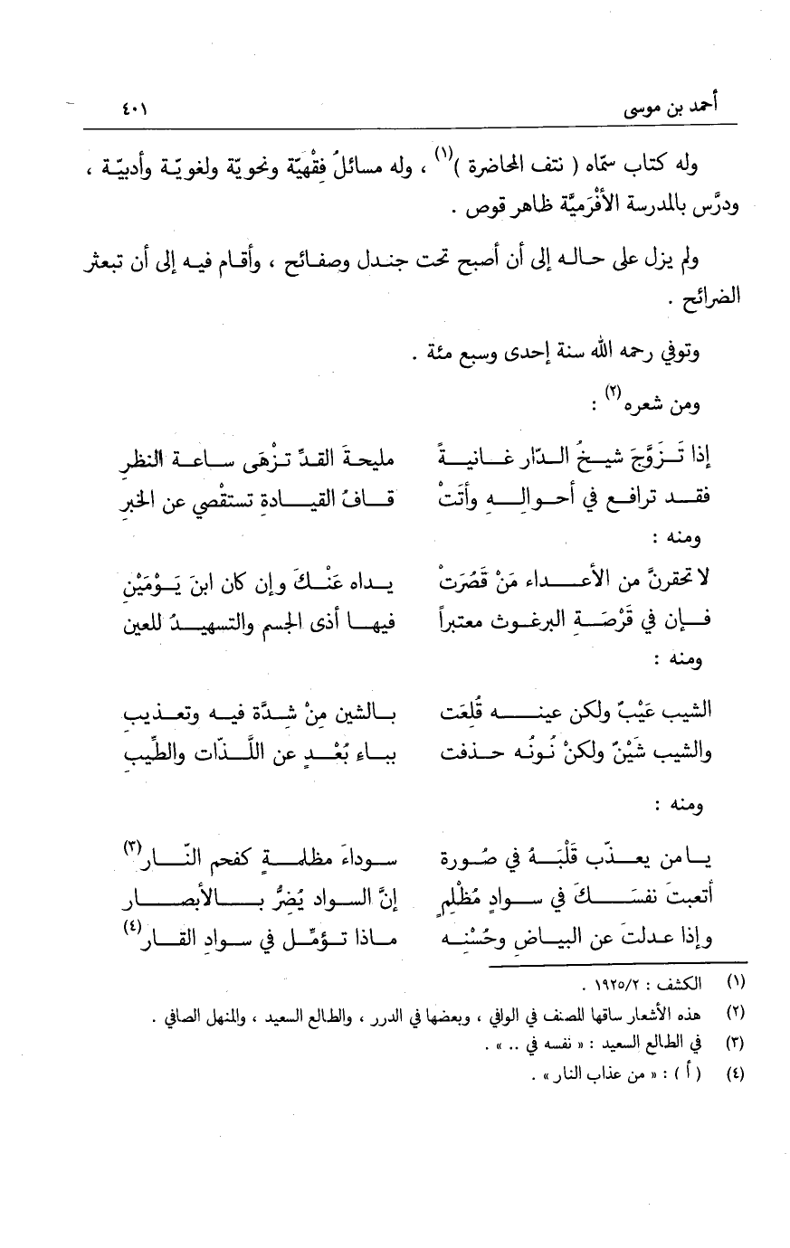 أتعبتَ نفسك في سوادٍ مظلمٍ ... إن السواد يُضرّ بالأبصار