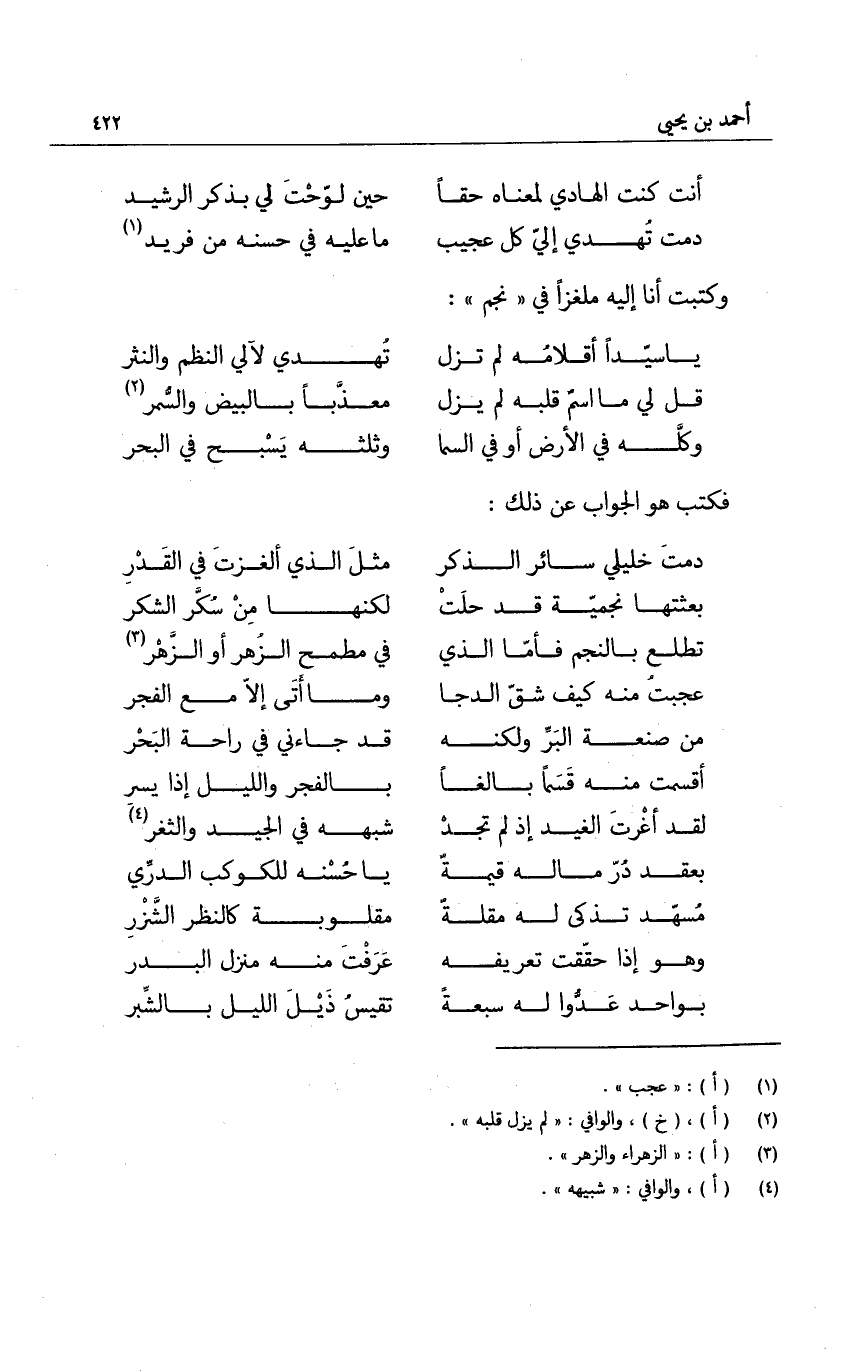 دمت تُهدي إليّ كل عجيب ... ما عليه في حسنه من فريد