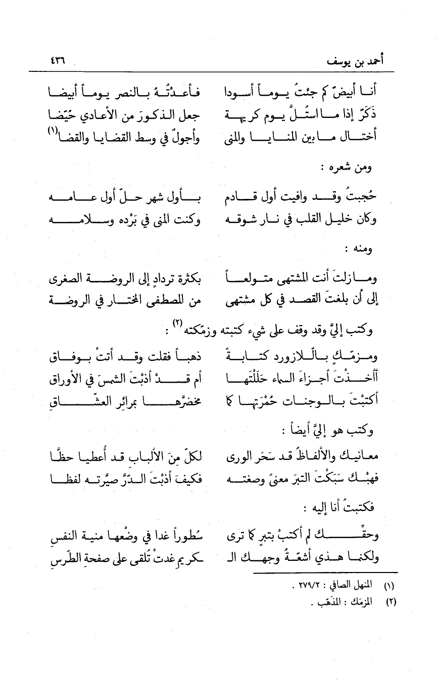 ومزمّكٍ باللازورد كتابةً ... ذهباً فقلت وقد أتتْ بوفاق