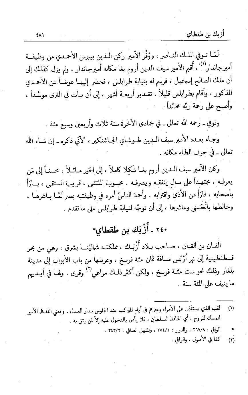 وجاء بعده الأمير سيف الدين طوغاي الجاشنكير، الآتي ذكره - إن شاء الله تعالى - في حرف الطاء مكانه.