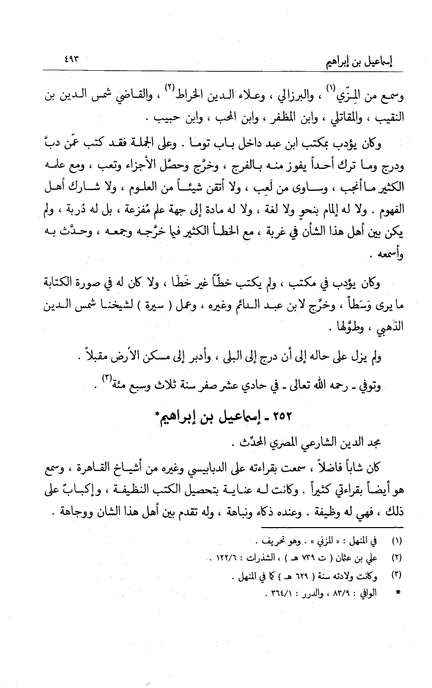 وكان يؤدب بمكتب ابن عبد داخل باب توما. وعلى الجملة فقد كتب عمن دب ودرج وما ترك أحداً يفوز منه بالفرج، وخرج وحصل الأجزاء وتعب، ومع عمله الكثير ما أنجب، وساوى من لعب، ولا أتقن شيئاً من العلوم، ولا شارك أهل الفهوم. ولا له إلمام بنحوٍ ولا لغت، ولا له مادة إلى جهة علم مفزعة، بل درب ولم يكن بين أهل هذا الشأن في غربة، مع الخطأ الكثير فيما خرجه وجمعه، وحدث به أسمعه.
