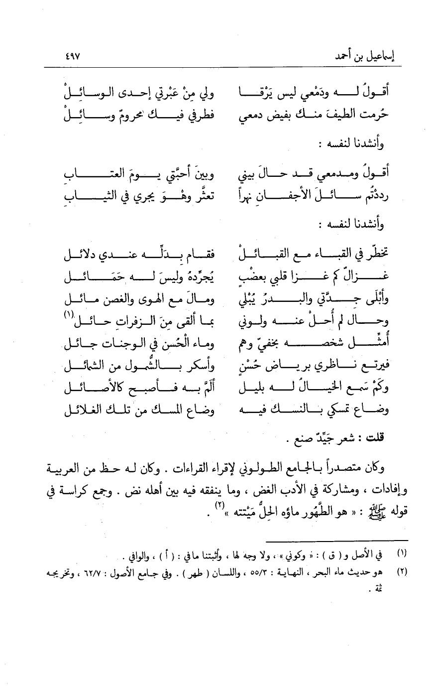 رددتم سائل الأجفانِ نهراً ... تعثر وهو يجري الثيابِ