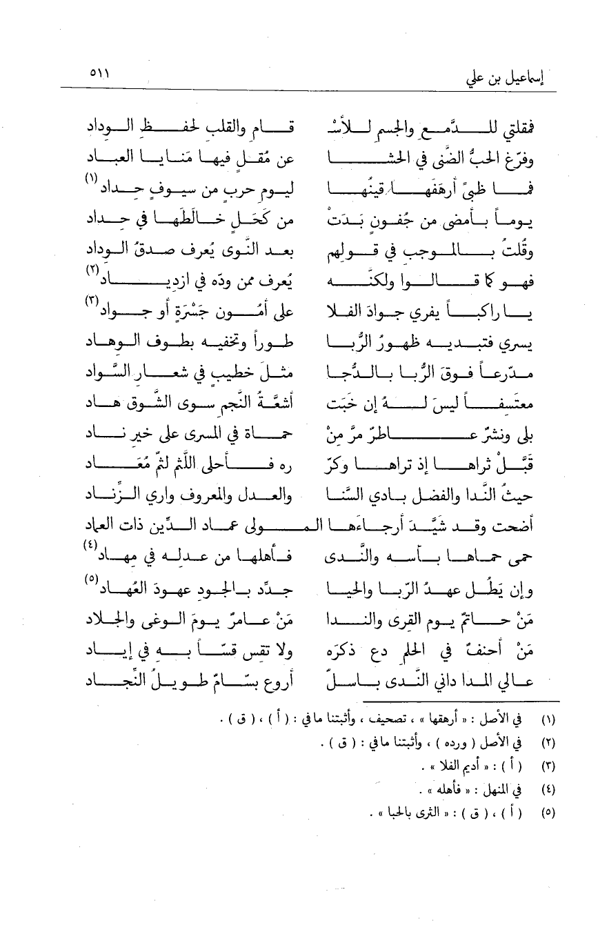 فمقلتي للدمعِ والجسمِ للأس ... قامِ والقلبِ لحفظِ الوداد