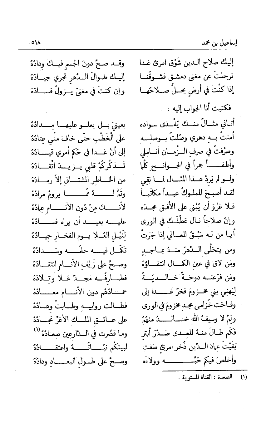 بقيتَ عماد الدين ذخر أمرىء صفت ... وما قصرت في الدارعين صعادُهُ