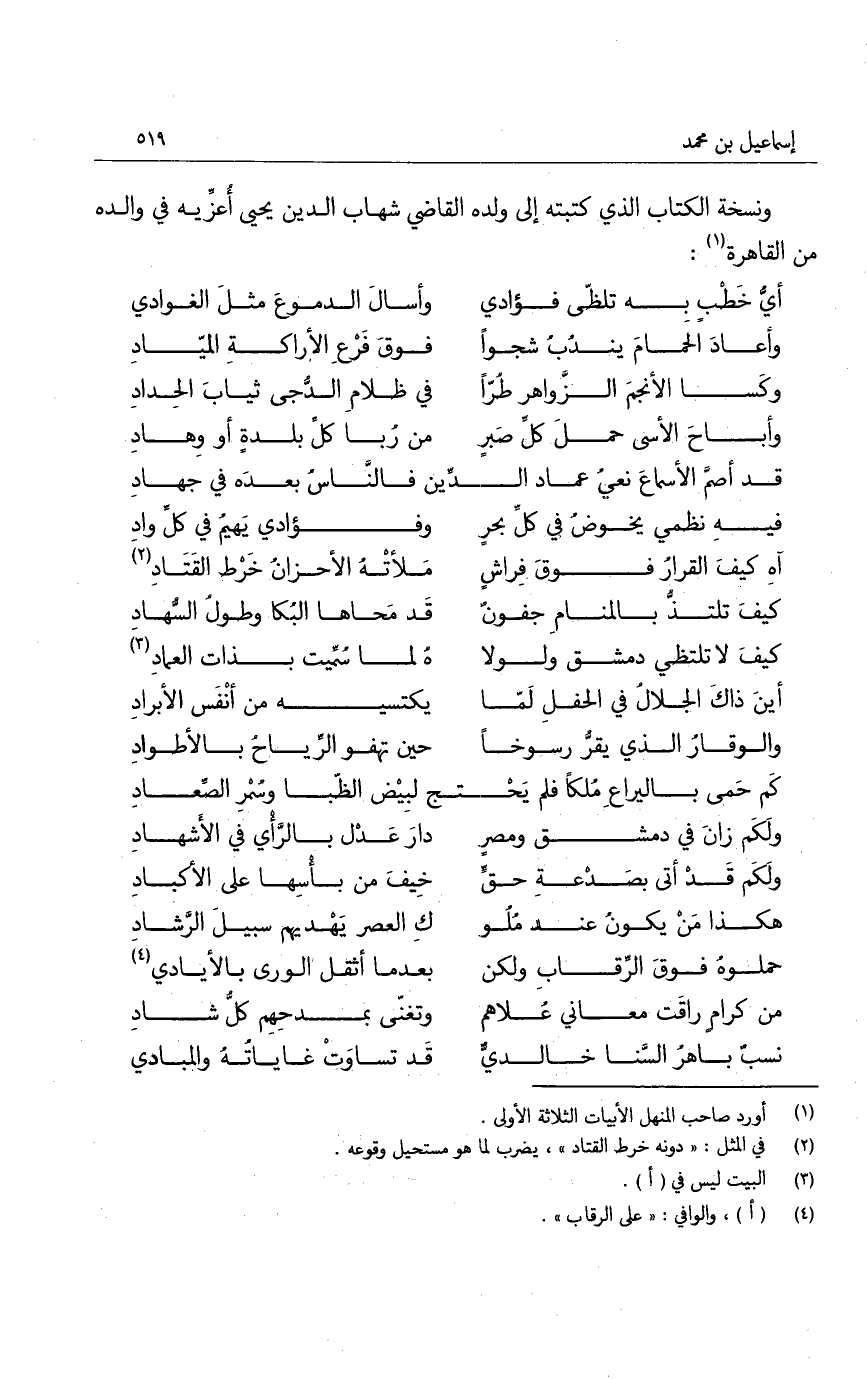 ونسخة الكتاب الذي كتبته إلى ولده القاضي شهاب الدين يحيى أعزيه في والده من القاهرة: