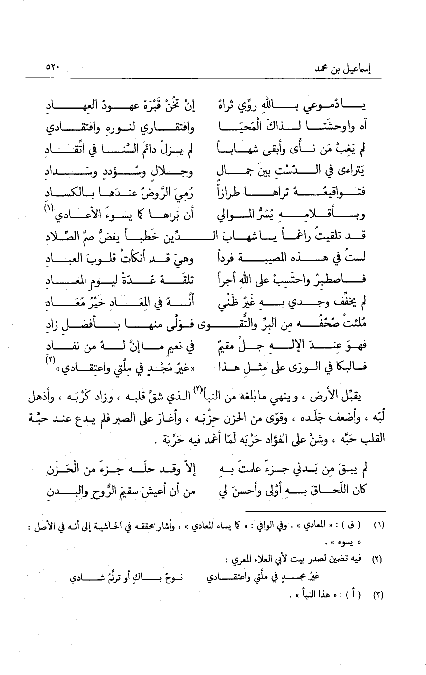 يا دموعي باللهِ روي ثراهُ ... إن تخن قبرهُ عهودُ العهادِ