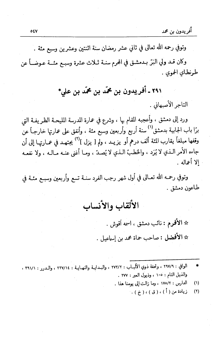 الأفرم: نائب دمشق، اسمه أقوش.