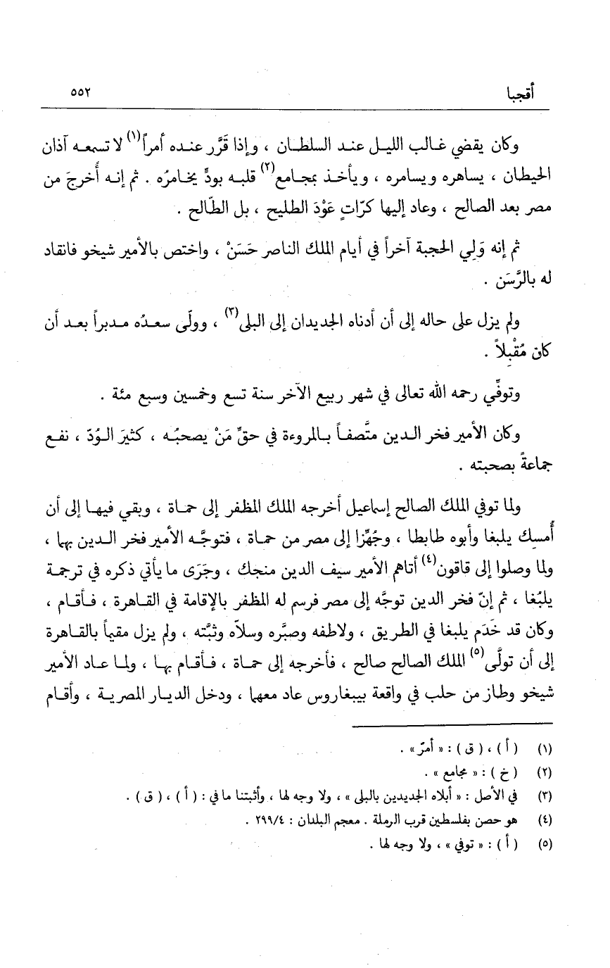 وكان يقضي غالب الليل عند السلطان، وإذا قرر عنده أمراً لا تسمعه آذان الحيطان، ويساهره ويسامره، ويأخذ بمجامع قلبه بود يخامره، ثم إنه أخرج من مصر بعد الصالح، وعاد إليها كراتٍ عودَ الطليح، بل الطالح.