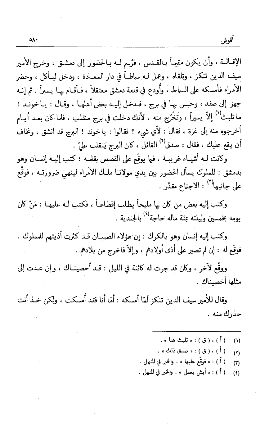 الإقالة، وأن يكون مقيماً بالقدس، فرُسم له بالحضور إلى دمشق، وخرج الأمير سيف الدين تنكز، وتلقاه، وعمل له سماطاً في دار السعادة، ودخل ليأكل، وحضر الأمراء فأمسكه على السماط، وأودع في قلعة دمشق معتقلاً، فأقام بها يسيراً. ثم إنه جهز إلى صفد، وحبس بها في برج، فدخل إليه بعض أهلها، وقال: يا خوند! ما تلبث إلا يسيراً، وتخرُج منه، لأنك دخلت في برج منقلب، فلما كان بعد أيام أخرجوه منه إلى غزة، فقال: لأي شيء؟ فقالوا: يا خوند! البرج قد انشق، ونخاف أن يقع عليك، فقال: صدق القائل، كان البرج ينقلب عليّ.
