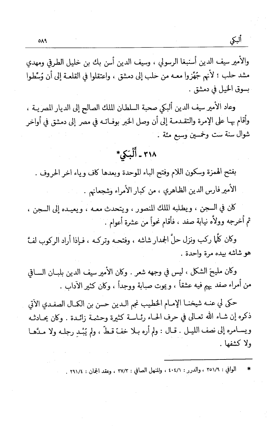 وكان مليحَ الشكل، ليس في وجهه شعر، وكان الأمير سيف الدين يلبان الساقي من أمراء صفد يهيم فيه عشقاً، ويكوت صبابة ووجداً، وكان كثير الآداب.