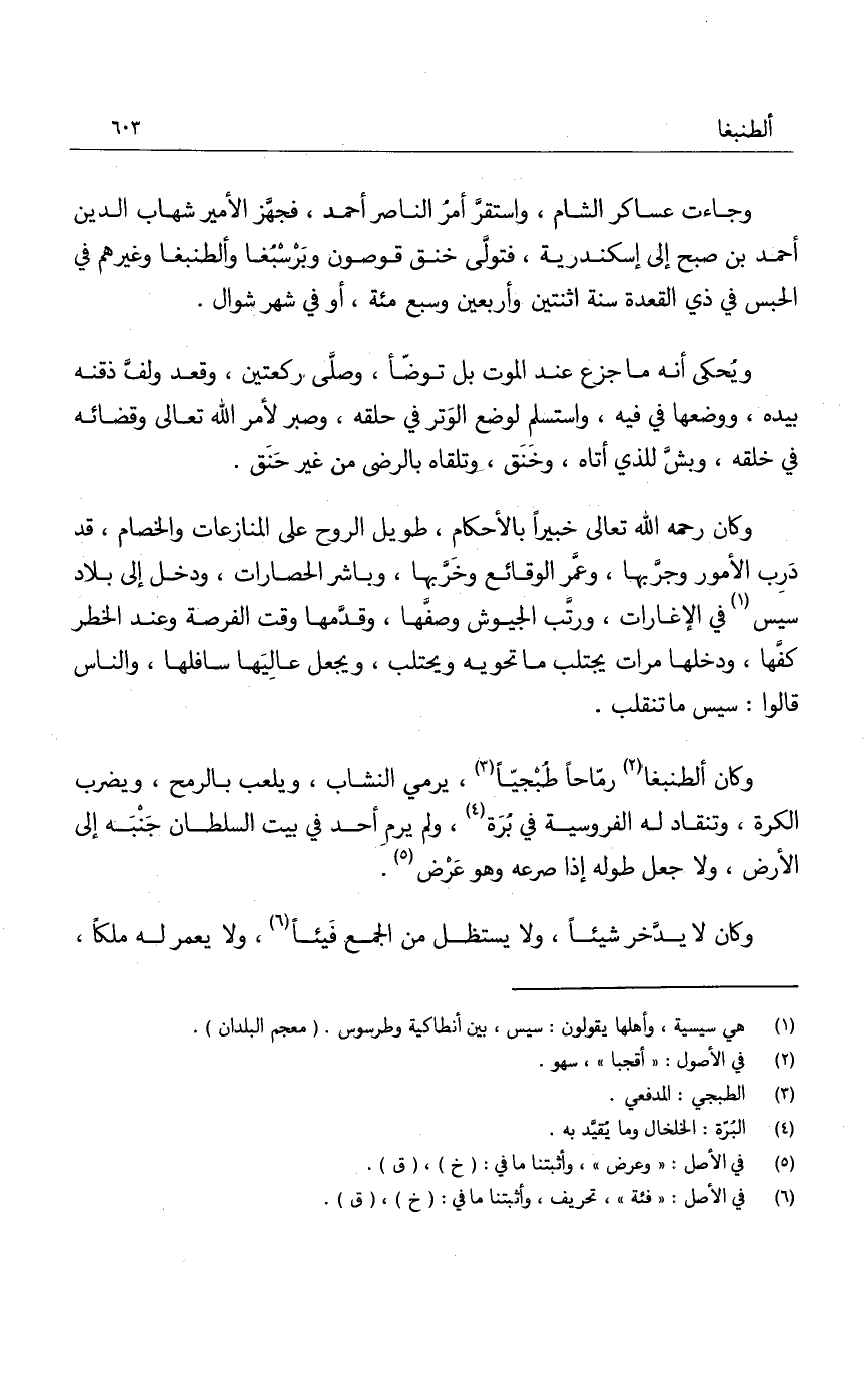 وكان رحمه الله تعالى خبيراً بالأحكام، طويل الروح على المنازعات والخصام، قد دَرِب الأمور وجرّبها، عمّر الوقائع وخرّبها، وباشر الحصارات، ودخل إلى بلاد سيس في الإغارات، ورتّب الجيوش وصفّها، وقدّمها وقت الفرصة وعند الخطر كفَّها، ودخلها مرات يجتلب ما تحويه ويحتلب، ويجعل علِيَها سافلها، والناس قالوا: سيس ما تنقلب.