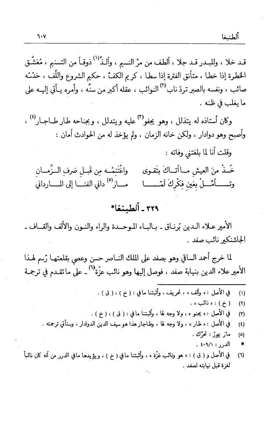 ألطنبغا الأمير علاء الدين بُرناق - بالباء الموحدة والراء والنون والألف والقاف - الجاشنكير نائب صفد.