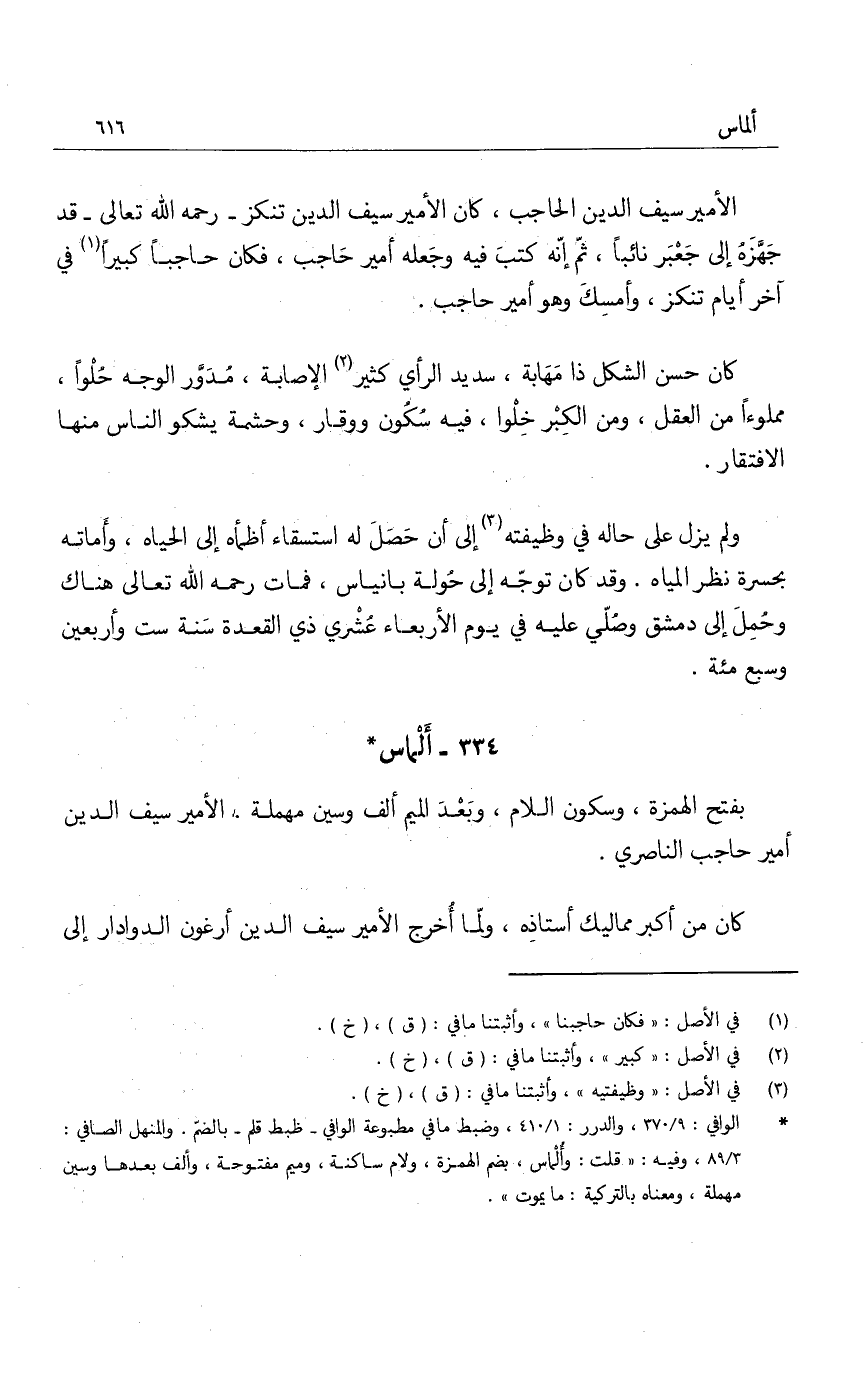 الأمير سيف الدين الحاجب، كان الأمير سيف الدين تنكز - رحمه الله تعالى - قد جهّزه إلى جَعْبَر نائباً، ثم إنه كتب فيه وجعله أمير حاجب، فكان حاجباً كبيراً في آخر أيام تنكز، وأمسِك وهو أمير حاجب.