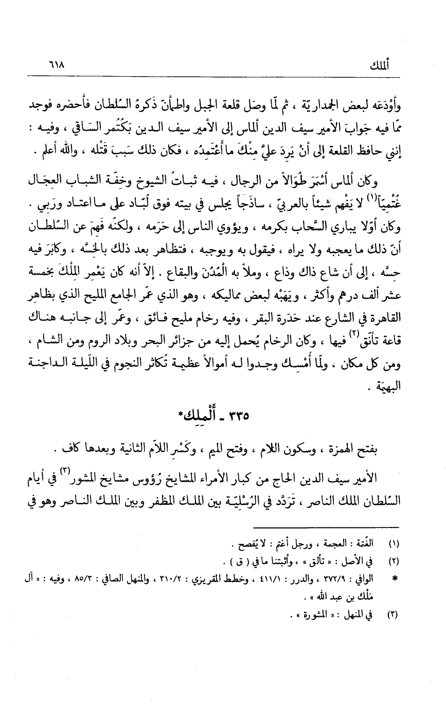وأوْدَعَه لبعض الجمدارية، ثم لمّا وصل قلعة الجبل واطمأنّ ذكره السلطان فأحضره فوجد مما فيه جَواب الأمير سيف الدين ألماس إلى الأمير سيف الدين بَكْتُمُر الساقي، وفيه: إنني حافظ القلعة إلى أن يَرِدَ عليَّ مِنك ما أعتمده، فكان ذلك سَببَ قَتله، والله أعلم.