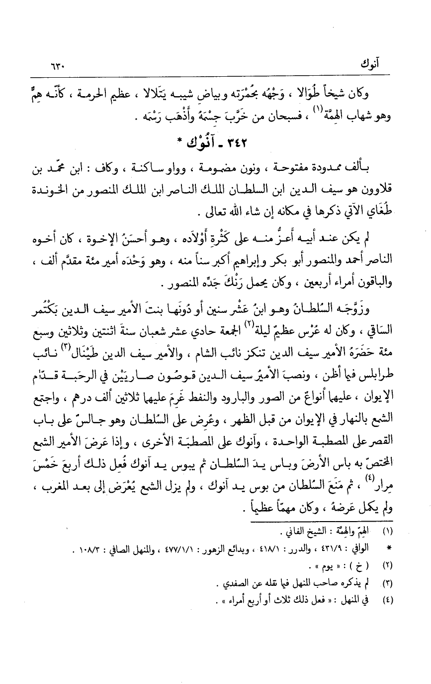 آنُوْك بألف ممدودة مفتوحة، ونون مضمومة، وواو ساكنة، وكاف: ابن محمد بن قلاوون هو سيف الدين ابن السلطان الملك الناصر ابن الملك المنصور من الخوندة طُغَاي الآتي ذكرها في مكانه إن شاء الله تعالى.