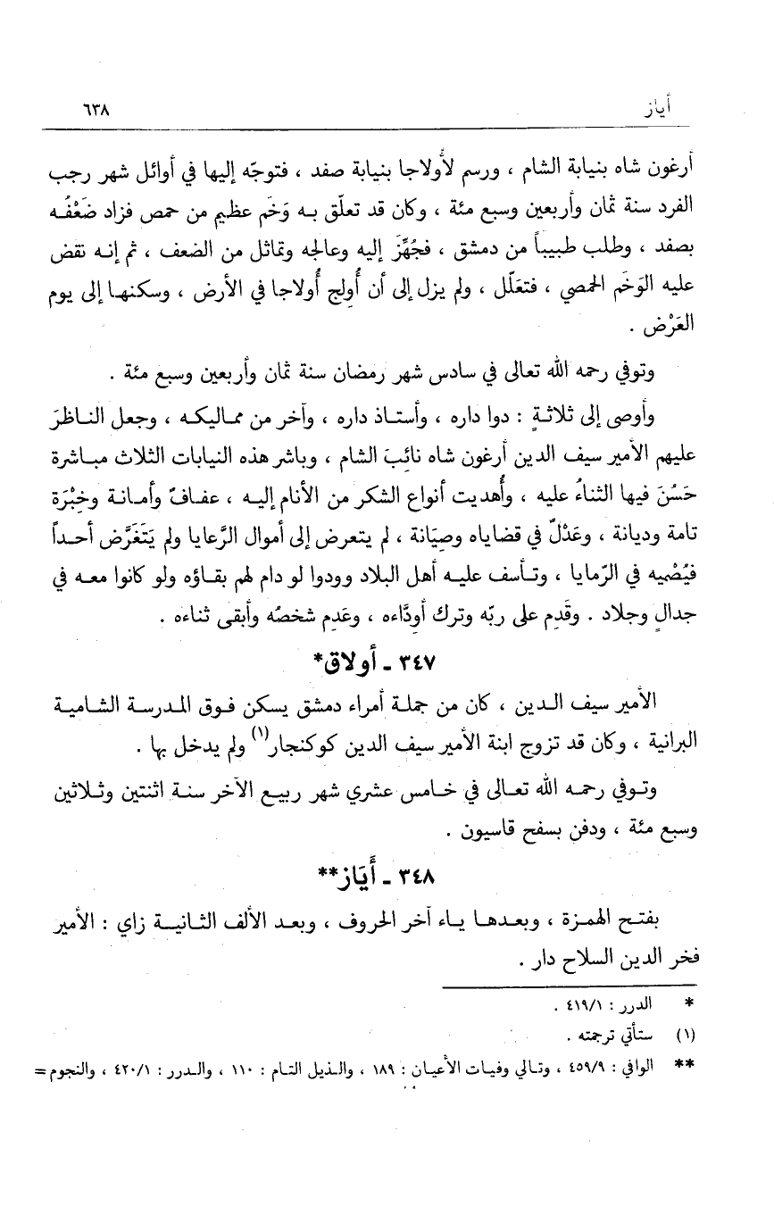 أَيَاز بفتح الهمزة، وبعدها ياء آخر الحروف، وبعد الألف الثانية زاي: الأمير فخر الدين السلاح دار.
