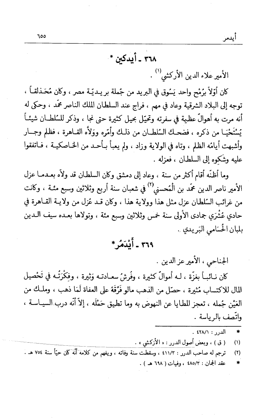 وما أظنّه أقام أكثر من سنة، وعاد إلى دمشق وكان السلطان قد ولاّه بعدما عزل الأمير ناصر الدين محمد بن المحسني في شعبان سنة أربع وثلاثين وسبع مئة، وكانت من غرائب السلطان عزل مثل هذا وولاية هذا، وكان قد عُزل من ولاية القاهرة في حادي عُشري جمادى الأولى سنة خمس وثلاثين وسبع مئة، وتولاها بعده سيف الدين بلبان الحُسامي البَريدي.