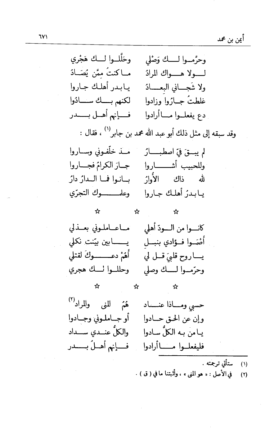 ولا شَجاني البِعادُ ... يا بدر أهلك جاروا